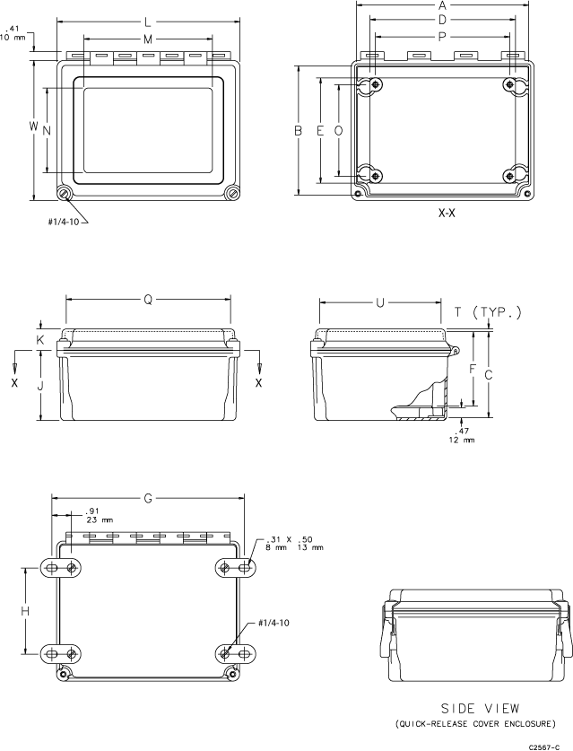 Continuous Hinge QR Cover Enclosure 4X, 10x8x6, Light Gray, Fiberglass
