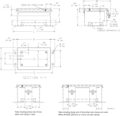 Continuous Hinge Enclosure Clamps CH Type 12, 8x6x3.50, Gray, Mild Steel